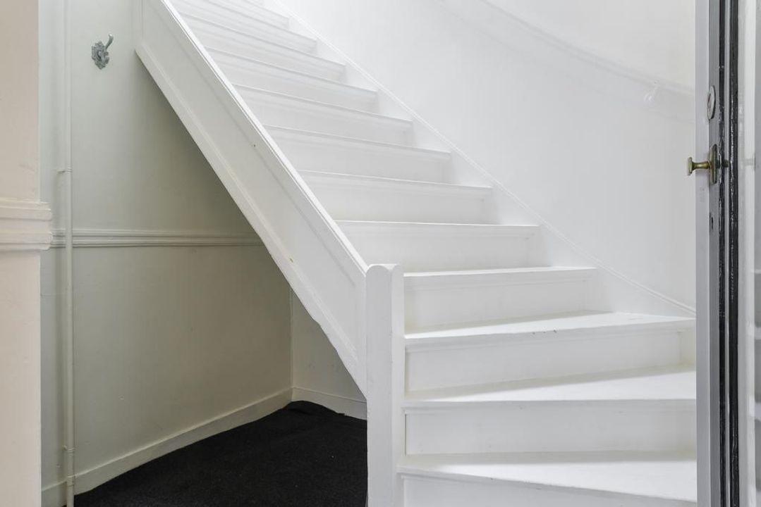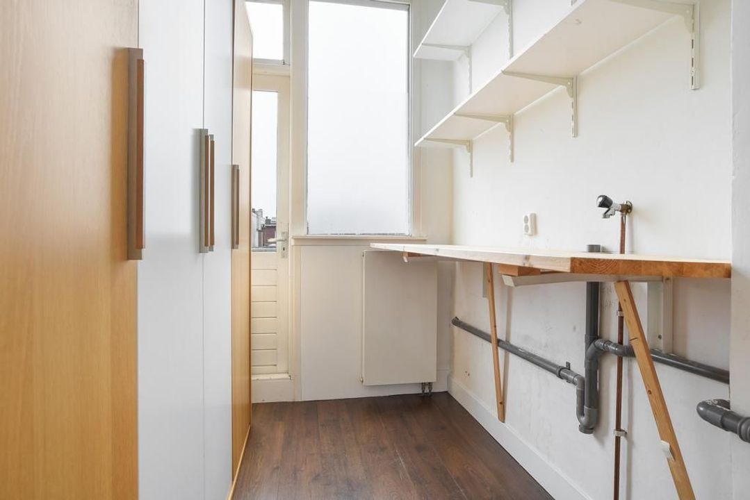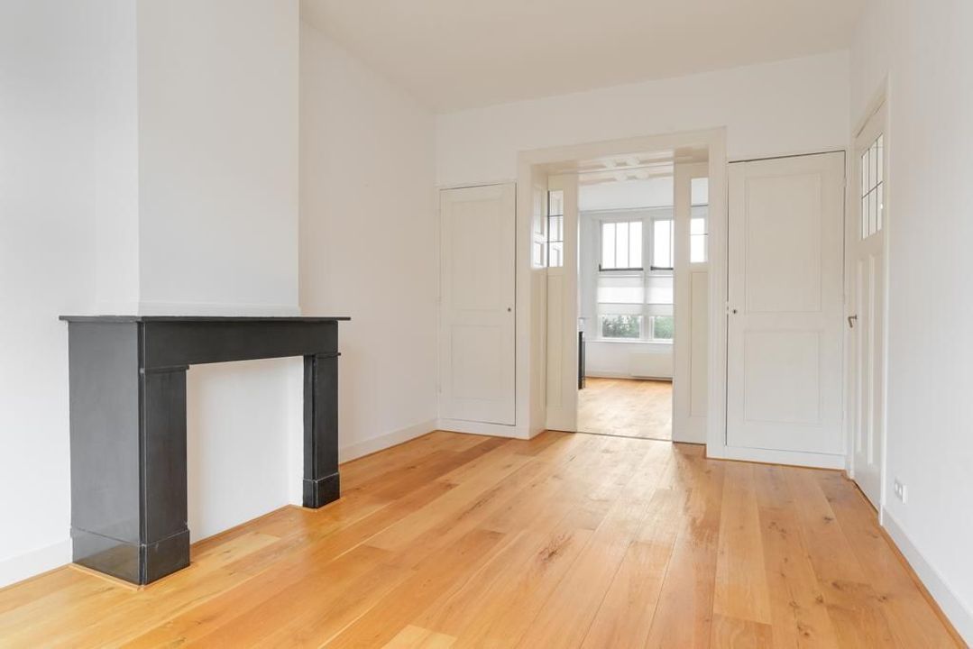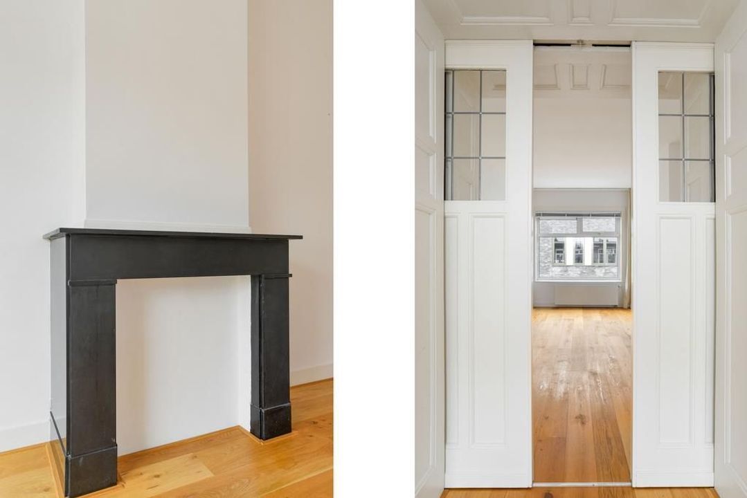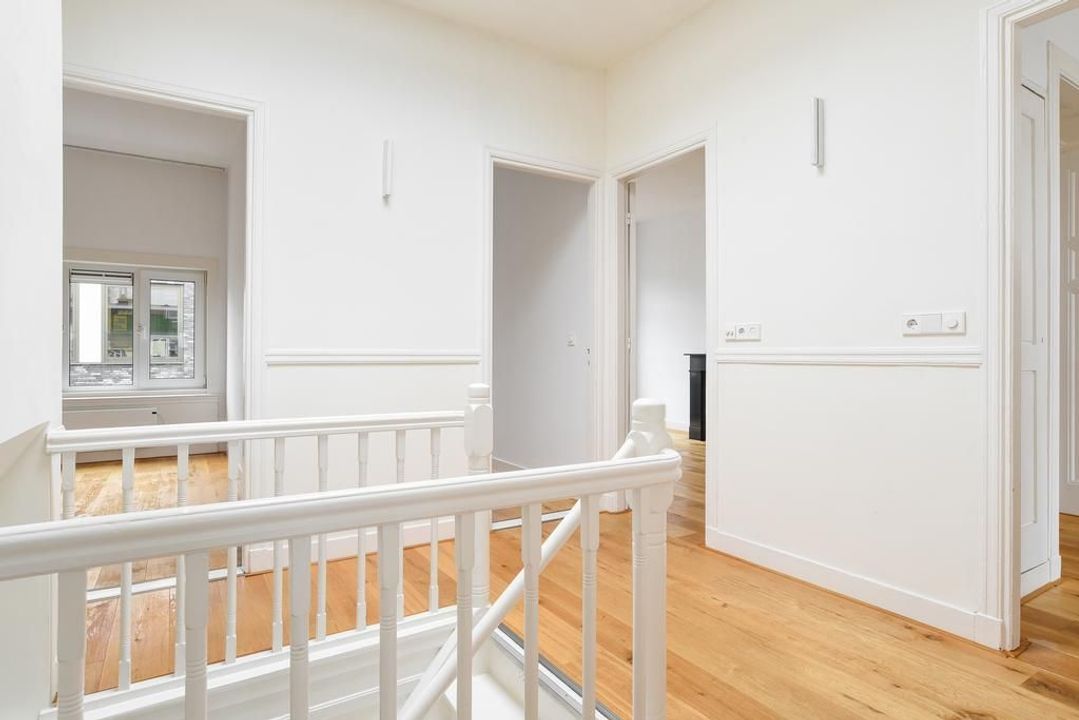 Entree op de 1e etage, ruime hal met bergruimte, trap naar de 2e etage met grote overloop voorzien van een grote lichtkoepel, mooie voor- en achterkamer en suite (10.26x3.26/3.31) met fraaie schouwen, hoge plafonds (2.93m) en originele suitedeuren en parketvloer, voorzijkamer (3.84x1.93), grote ouderslaapkamer (3.84x2.56) eveneens aan de voorzijde, bergkamer (3.09x1.99) met wasmachineaansluiting, moderne keuken (3.09x2.44) voorzien van inbouwapparatuur, zoals vaatwasser, gaskookplaat met afzuigkap en oven, toegang tot achterbalkon (4.60x0.99) op het noordwesten, modern betegelde badkamer (2.99x1.47/1.67) met toilet, mooie wastafel en inloopdouche.