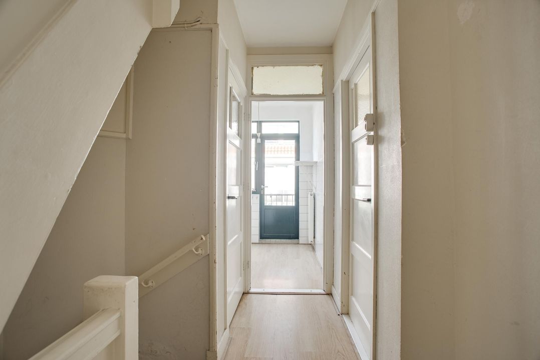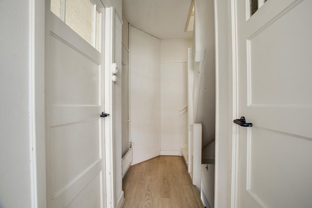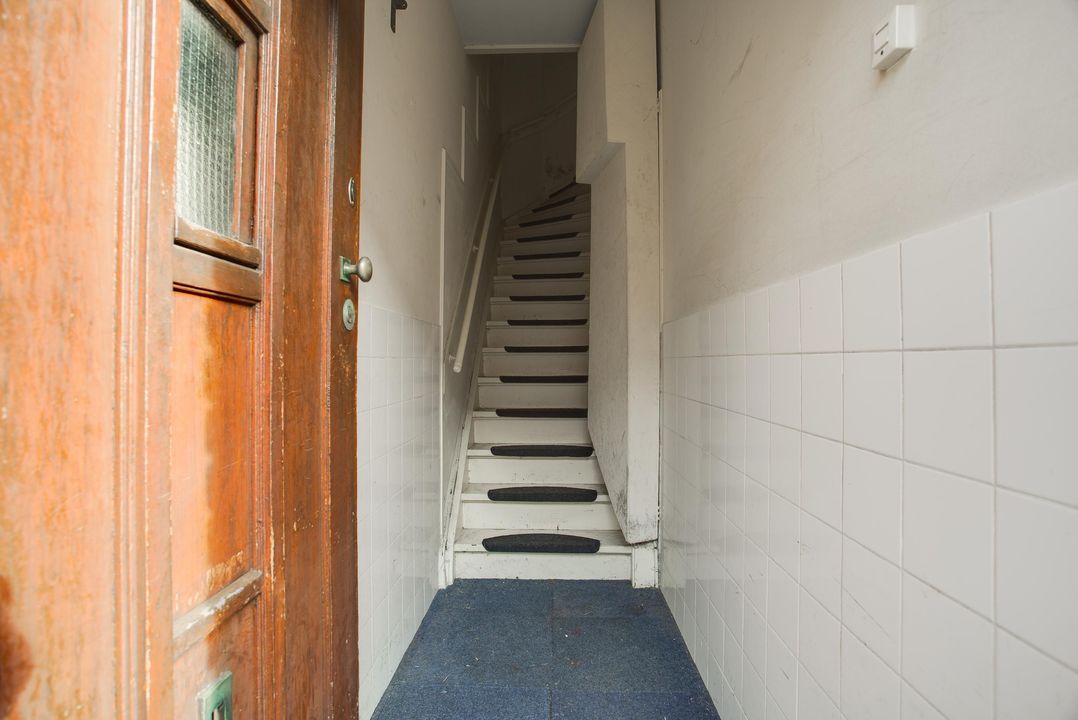 Kleine, gedeelde voortuin, entree op de parterre gang met meterkast,