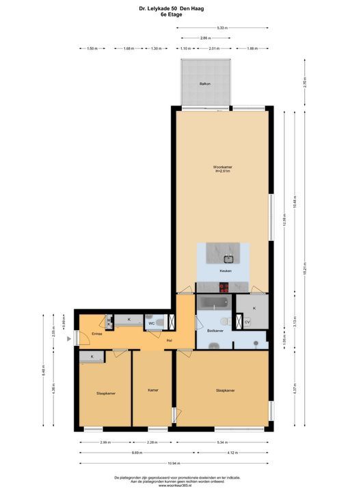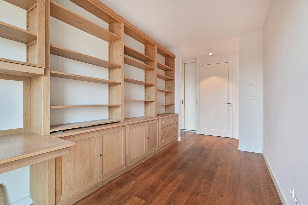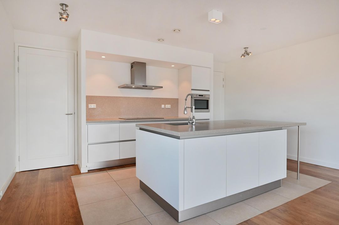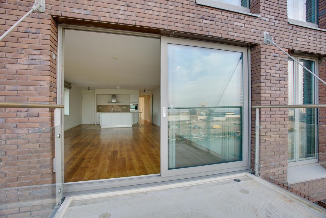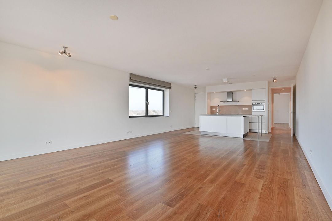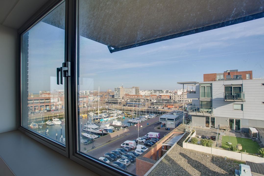 Gezamenlijke entree met lift en trappenhuis naar de 6e etage, entree van het appartement dat geheel is voorzien van vloerverwarming en een massieve houten vloer, L-vormige gang met meterkast, af te sluiten garderobe kast, toilet met hangcloset en fontein leidt naar de woon-/ eetkamer met open keuken en spoeleiland, te samen 10.5x5.3, een terras 2.7x2.8 met zeezicht en een bijkeuken 1.9x1.9. De woonkamer is 5.3 meter breed is heeft een groot zijraam met zicht op de restaurants aan de kopse kant van de haven en een schuifpui geeft toegang tot het terras waar u kunt genieten van de middag- en avondzon, de 2de binnenhaven en de Noordzee, terug in de woonkamer treft u de fraaie keuken bestaande uit het spoeleiland met stenenblad, de afwasmachine en gelegenheid om gezellig aan te schuiven, het keukendeel dat tegen de muur aan is geplaatst is voorzien van een 5-pits inductie kookplaat, een RVS afzuigkap, een combimagnetron en veel bergruimte, in de hoek naast de keuken is de toegang tot de bijkeuken met de wasmachineaansluiting en de Cv-ketel, aan de achterzijde liggen 3 kamers, te weten de hoofdslaapkamer 5.3x4.4 met meerdere grote ramen en een fraai uitzicht op de skyline van Den Haag en dus de ochtend zon, de open studeerkamer 4.35x2.3 met prachtige, op maat gemaakte boekenkast met bureau en de gasten kamer 4.35x3.0 met vaste kast, tot slot is er de ruime badkamer 3.1x2.0 en 2.0x1.0 met ligbad, een fraai wastafelmeubel, hangcloset en een ruime inloopdouche met regendouche.