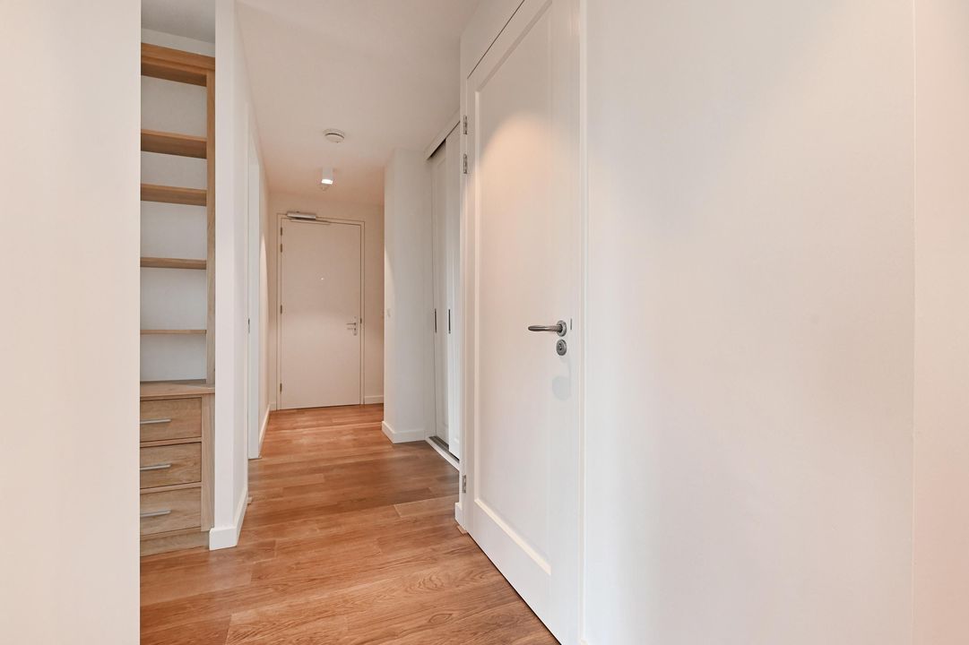 Binnen vind je rust, ruimte en licht. Dankzij de grote ramen, de uitgekiende inrichting en de hoge ligging geniet je niet alleen van privacy in het ruim opgezette appartement maar ook van het vele daglicht, deze factoren brengen de dynamiek van de stad en de kust tot in je kamer.