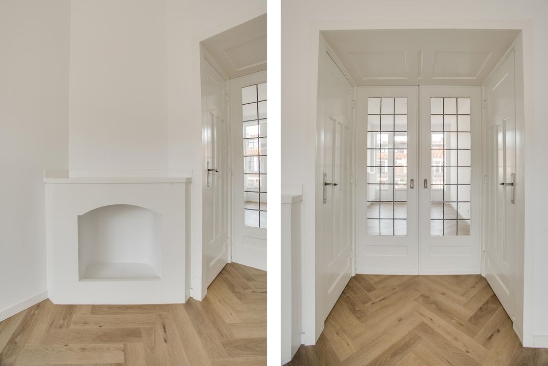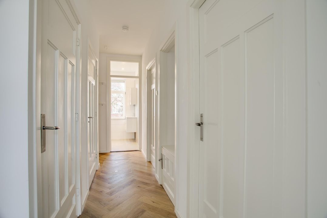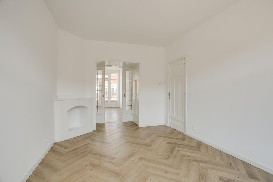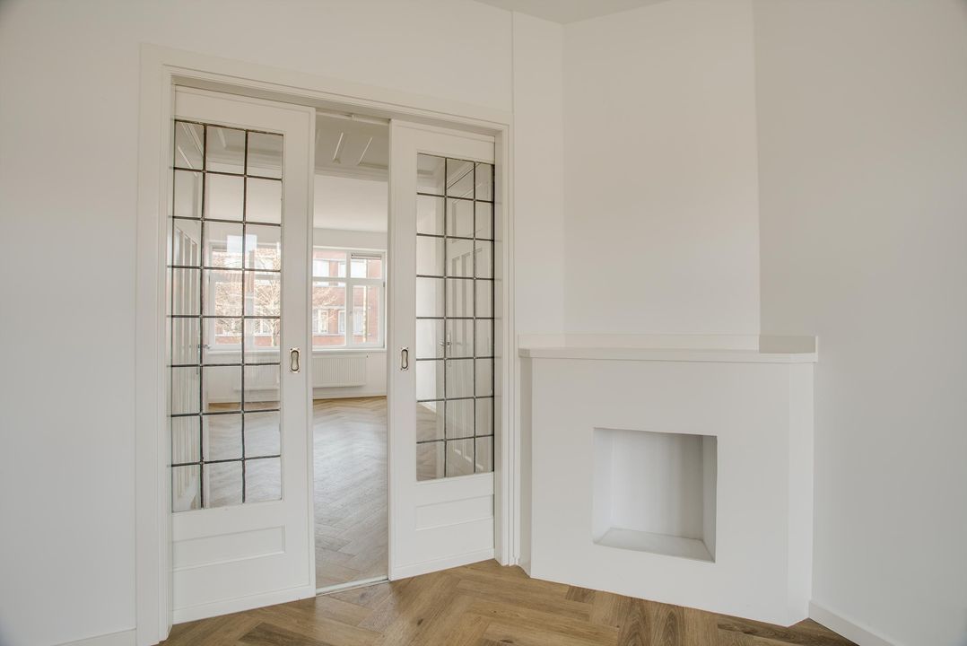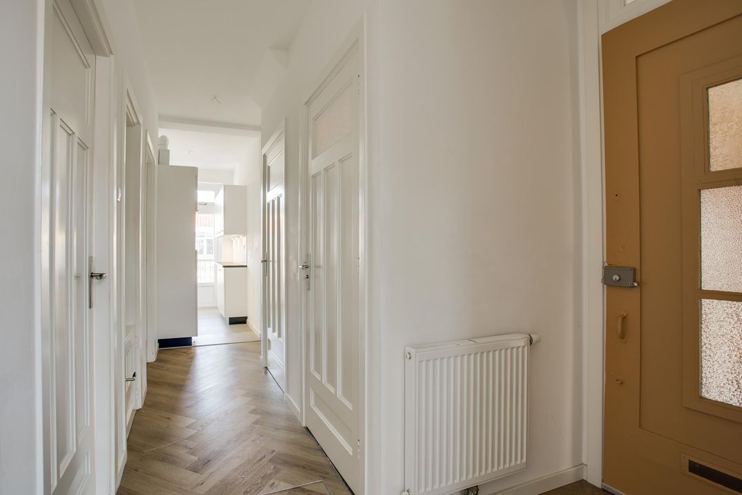 entree, gang, mooie kamer en suite (10.67x3.29/2.78) met fraaie originele suitedeuren en kasten en een mooie pvc visgraat laminaatvloer, luxe keuken (3.85x1.70) met inbouw apparatuur zoals vaatwasser, 4 pits inductie kookplaat, afzuigkap, koelkast en oven, achterzijkamer (3.85x2.00), gangkast, modern toilet, luxe badkamer (2.38x1.91) met ligbad en wastafel.
