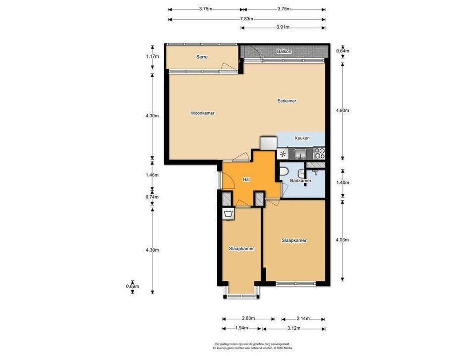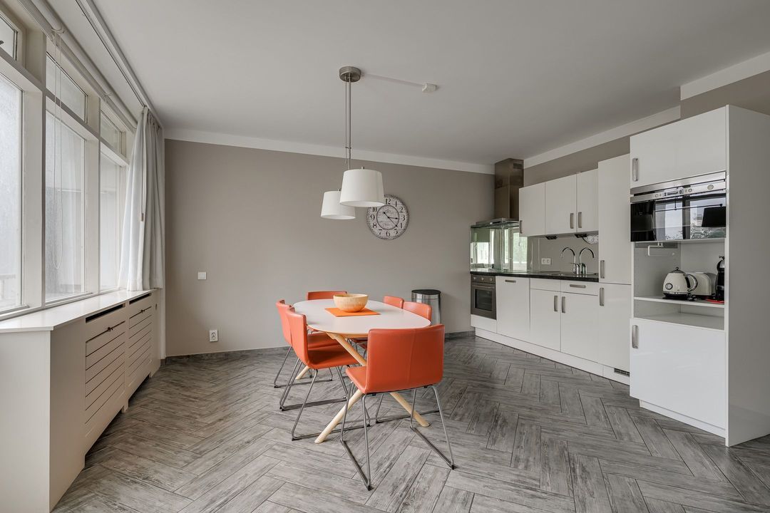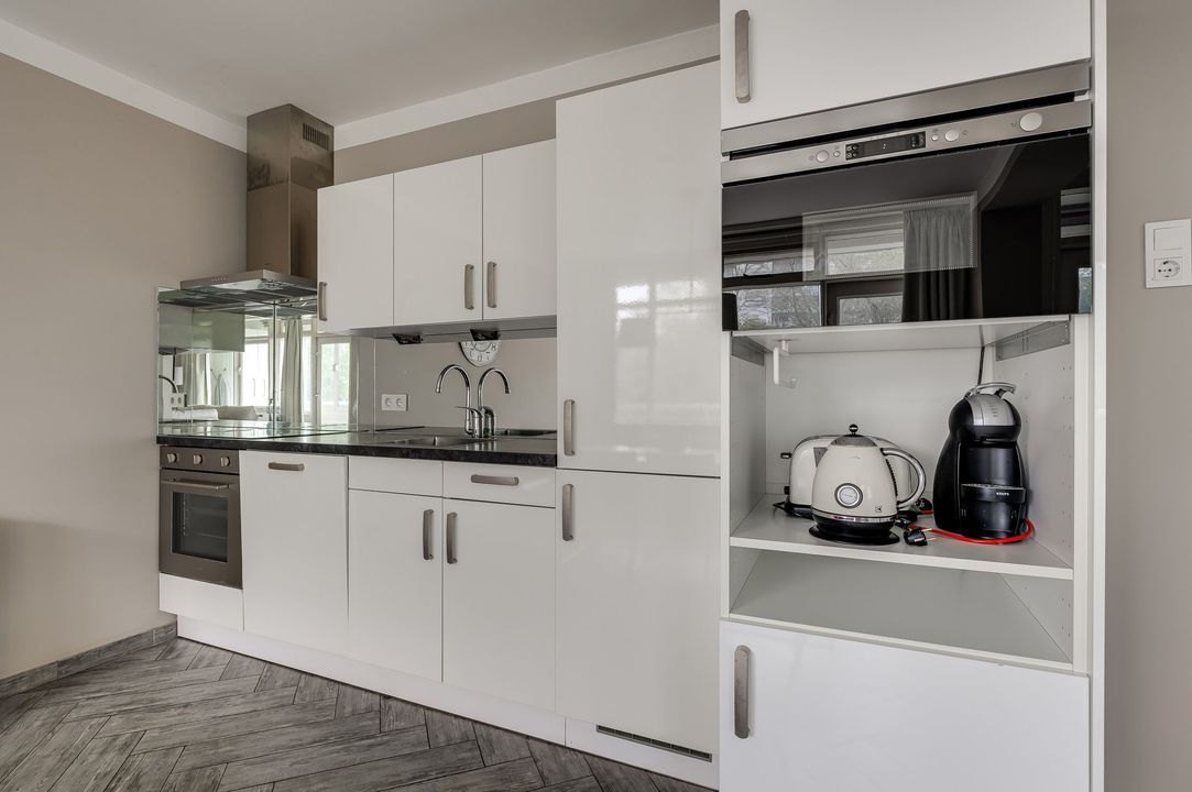 Entree, trap en lift naar de 3e etage, gang met garderobe en meterkast, toilet met fontein, ruime woon/eetkamer (7.84 x 4.88/4.03) met een luxe open keuken en met balkon (3.90x0.65) op het zuidoosten en een afgesloten loggia (3.77x1.18). Keuken voorzien van koel/vriescombinatie, vaatwasser, 4-pits inductiefornuis en afzuigkap.
