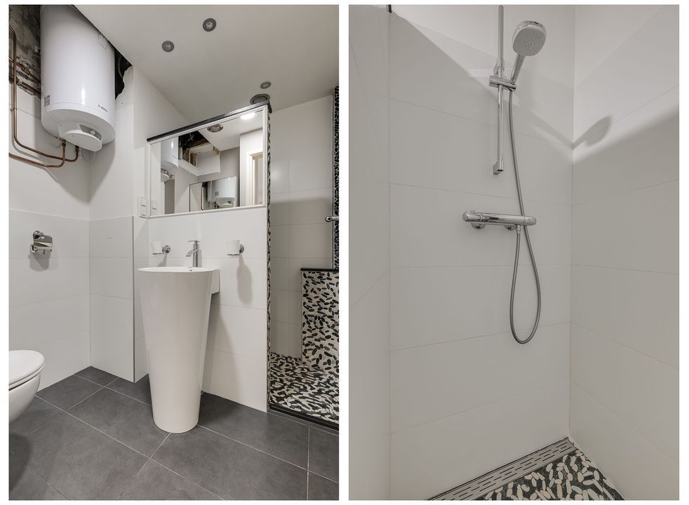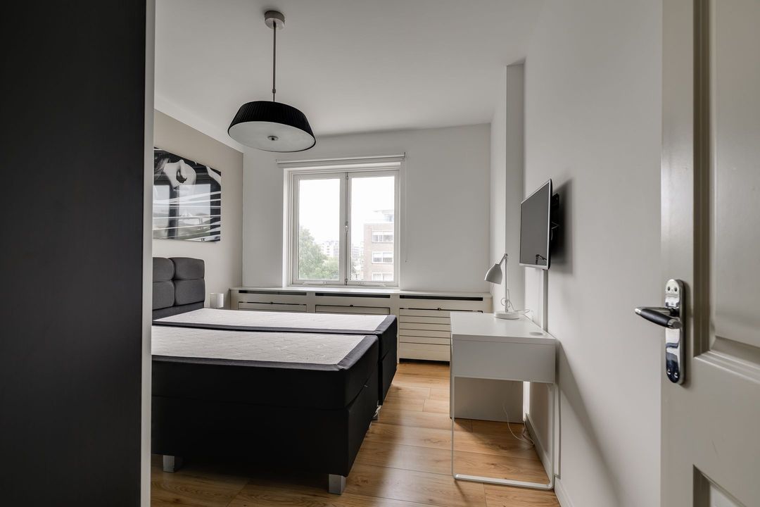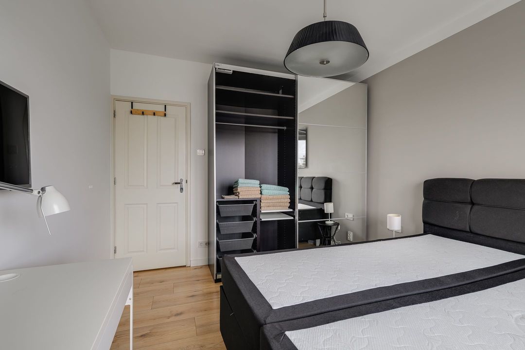Grote slaapkamer (3.91x3.13) , modern betegelde badkamer met douche, toilet en wastafel, 2e slaap/werkkamer (3.91x1.95) met w.m.a..