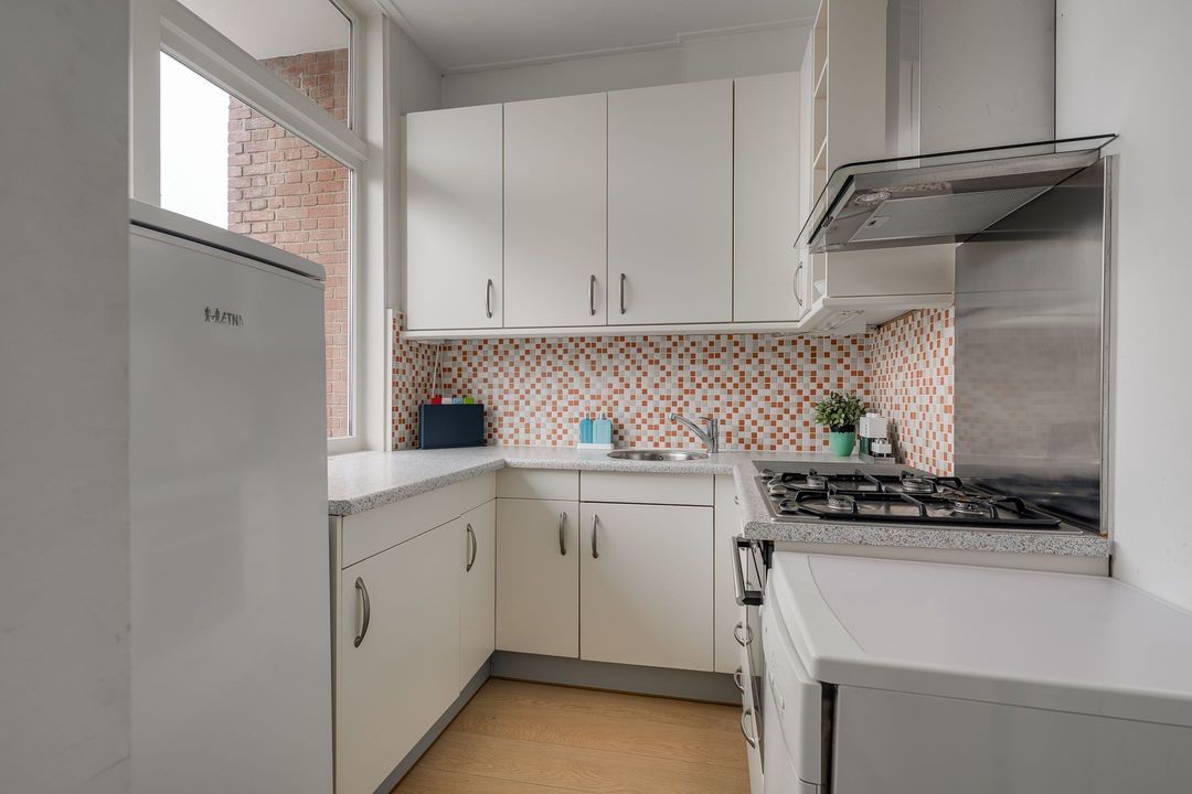 Op de hoek met de Tomatenstraat gelegen, ruim (opp. ca. 81m²) en licht appartement op de eerste etage met achterbalkon over de gehele breedte. Door de ligging op de hoek van de straat creëren de kozijnen rondom veel lichtinval!