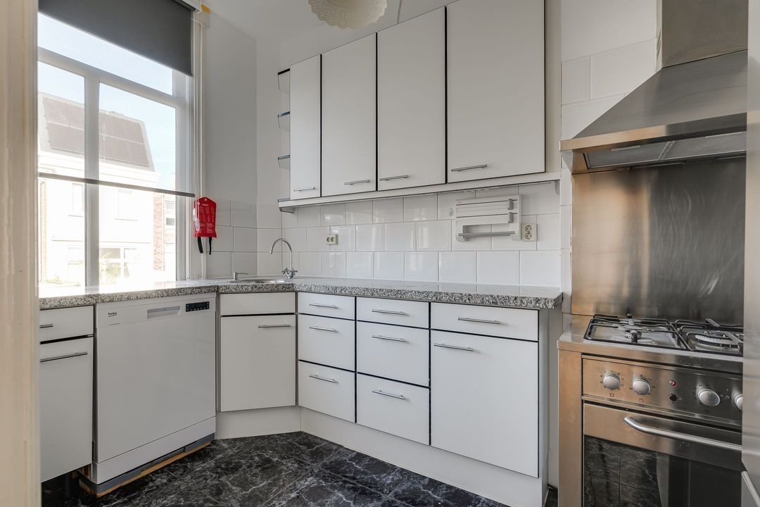 Vanuit de woonkamer is een doorgang naar de keuken (3.39x2.08), deze is voorzien van veel werk- en bergruimte, granieten werkblad, een 5-pits gasfornuis met een extra brede elektrische oven, afzuigkap, vaatwasser en koel/vries combi en deur naar het balkon. Op deze verdieping bevindt zich ook een separaat toilet, een inloopkast te gebruiken als garderobe of voorraadkast, en een ruime zijkamer (4.47x2.13), ideaal als logeerkamer of werk-, studeer- of hobbykamer. Verder is op deze eerste etage een kleine badkamer aanwezig, voorzien van een douche en een wastafel.
