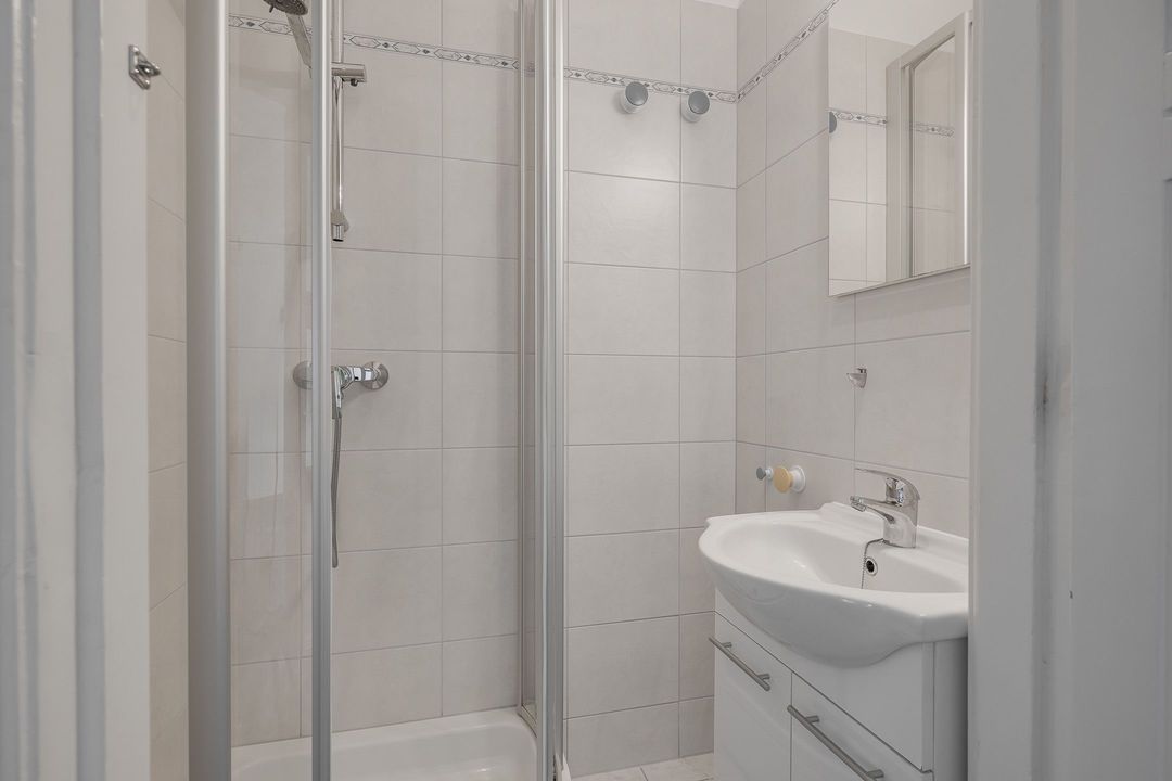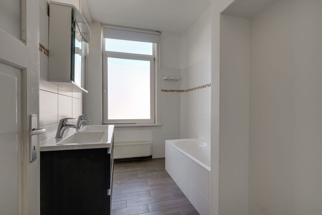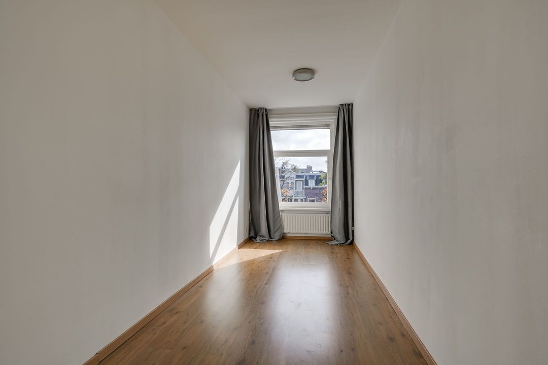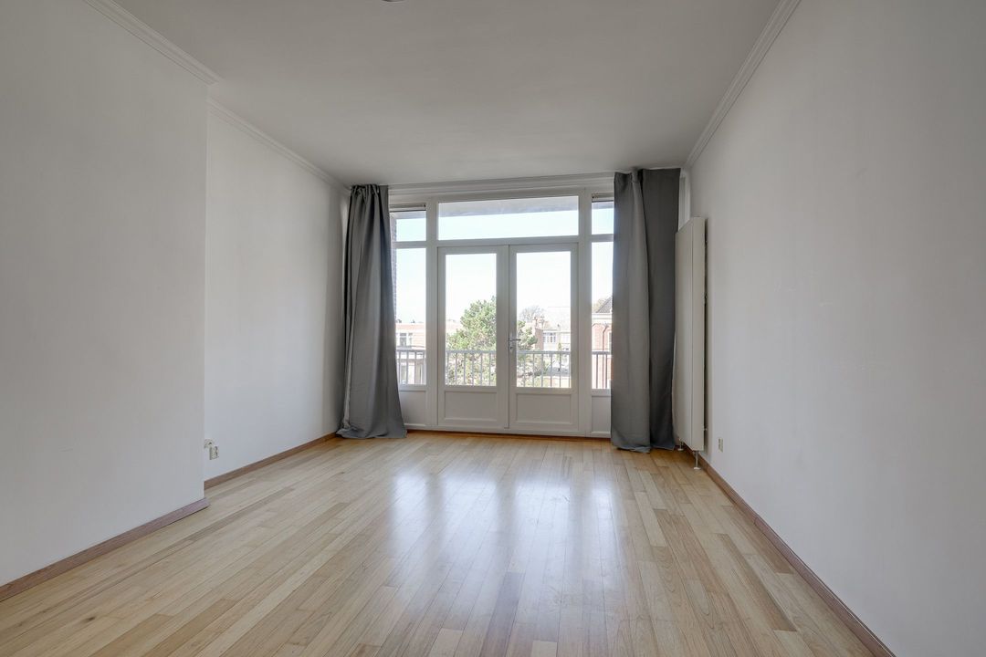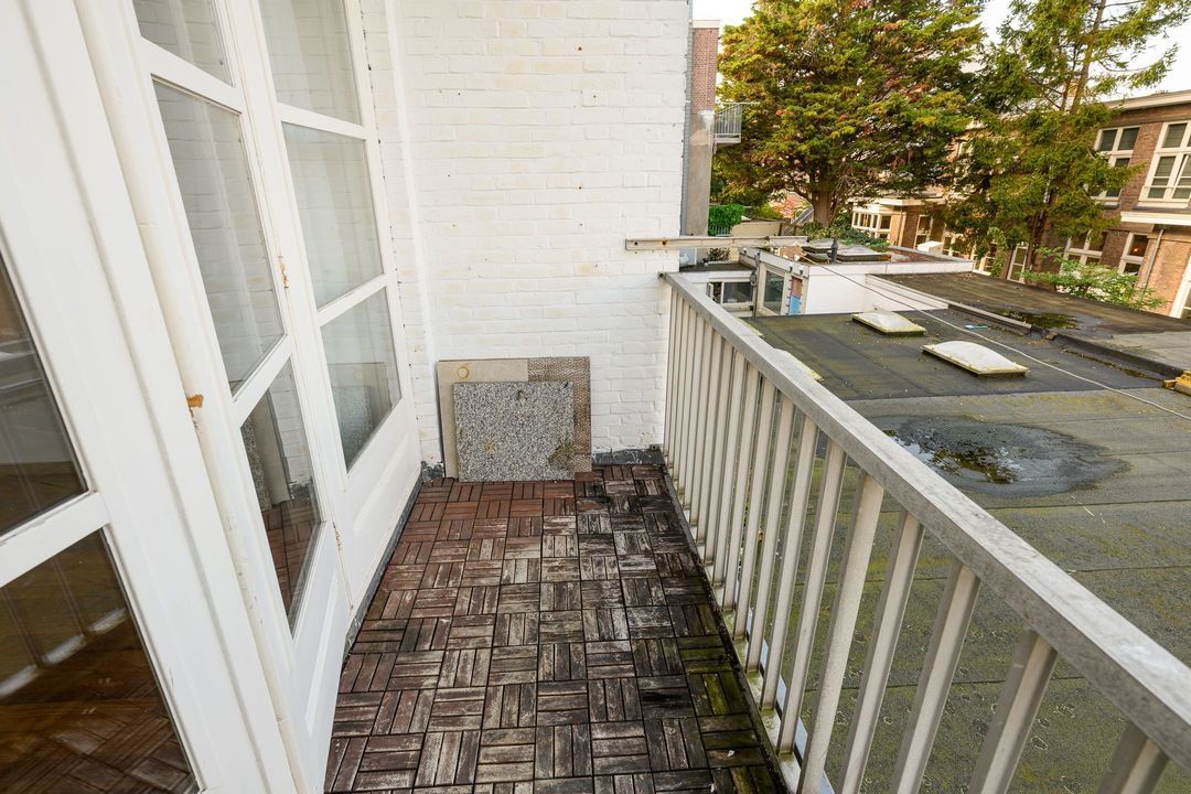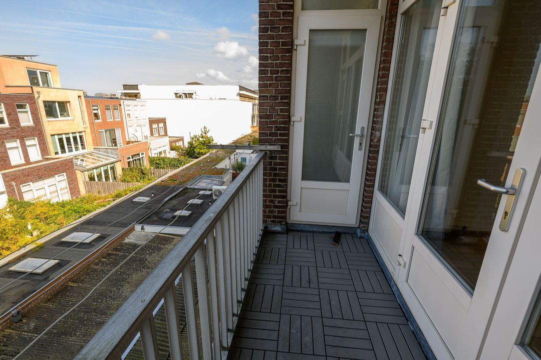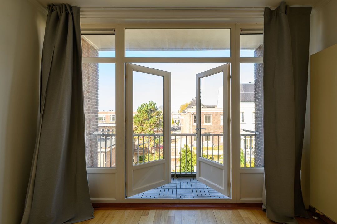 De achterkamer (6.04x3.80) heeft openslaande deuren naar het balkon (3.80x1.21) op het nw met middagzon. De zijkamer aan de voorzijde (5.95x2.12) is ideaal als werk-, studeer- of kinderkamer.