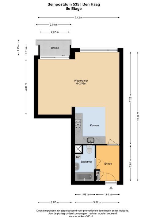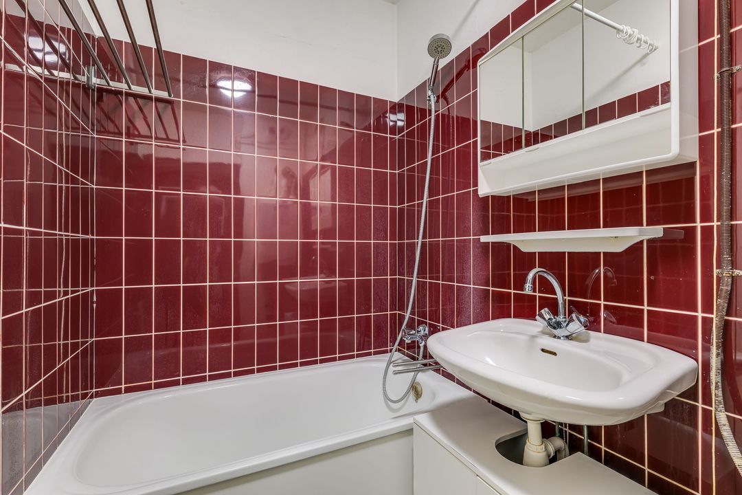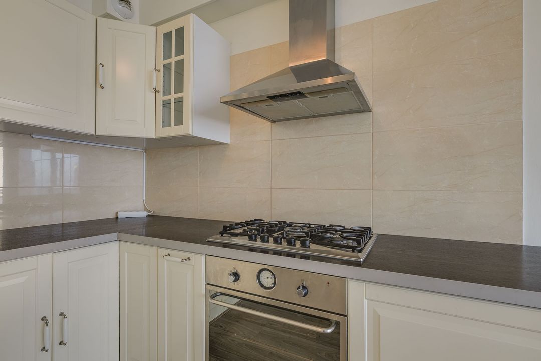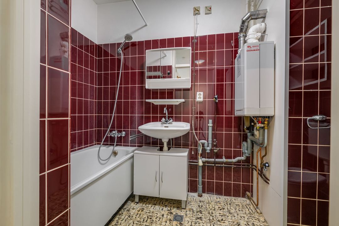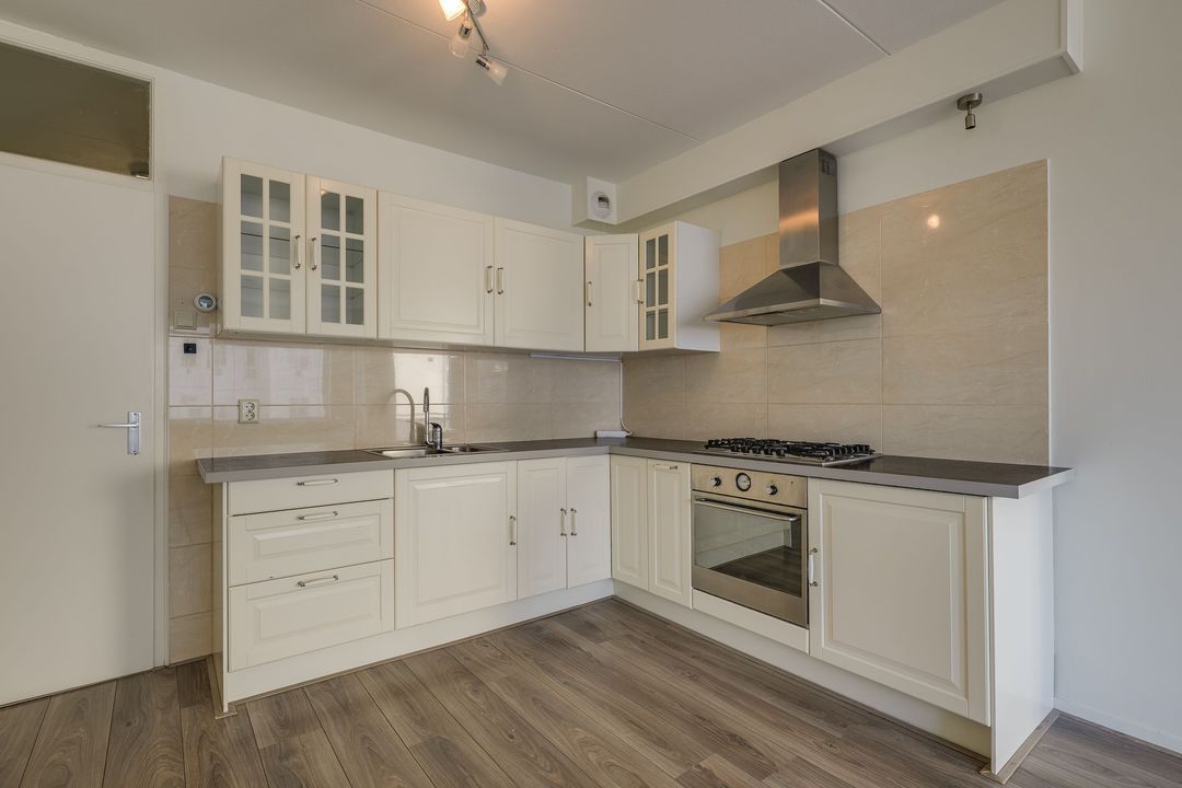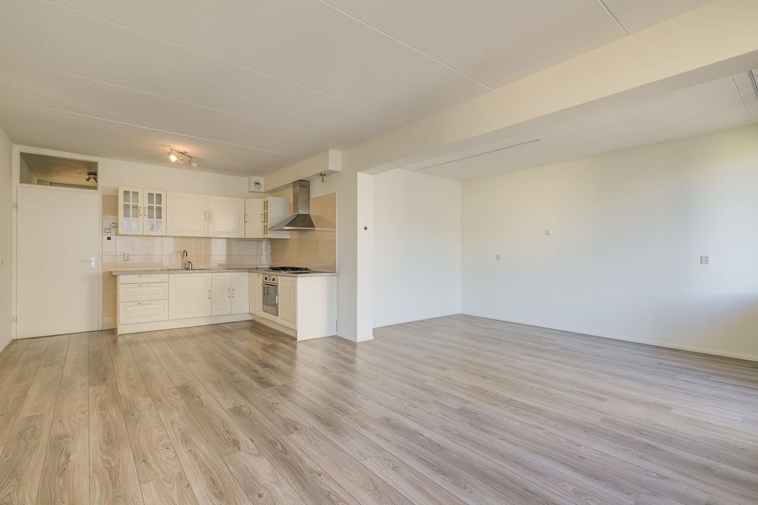 Via de gezamenlijke entree kunt u met de lift of via het trappenhuis naar de vijfde etage. Via de galerij met fraai uitzicht over Den Haag komt u bij het appartement, bij binnenkomst in de ruime hal met meterkast, treft u links de badkamer aan 1.5x2.8, deze verkeert in originele staat en is voorzien van een bad, wastafel, toilet, wasmachineaansluiting en de CV-ketel, woon- / eetkamer 6,4 x 4,4 m met een open keuken, voorzien van inbouwapparatuur, te weten oven, koelkast, vier pits gaskookplaat en afzuigkap, aansluitend via de schuifpui kunt u het balkon op het noordwesten met avondzon, aan de voorzijde betreden 2,8 bij 1,3 m. Vanuit hier kunt u een glimp van de zee opvangen.