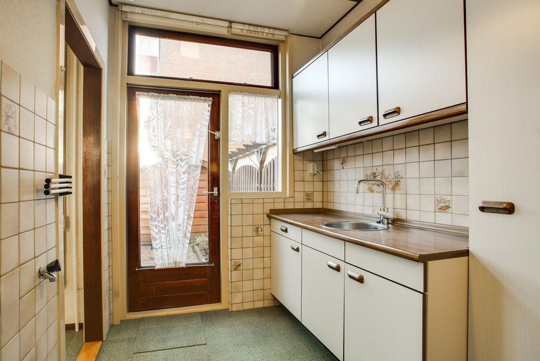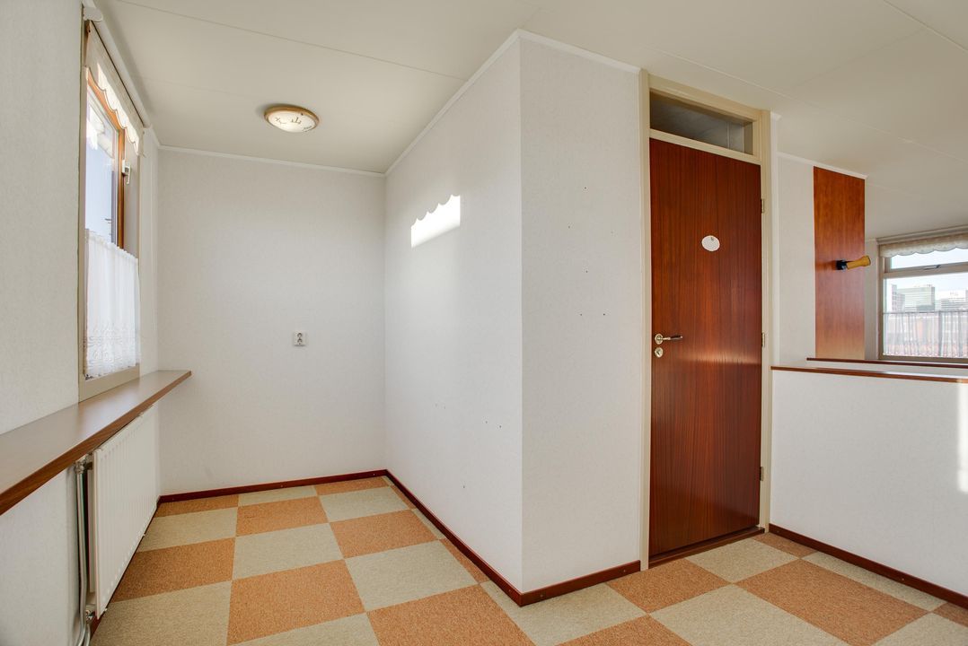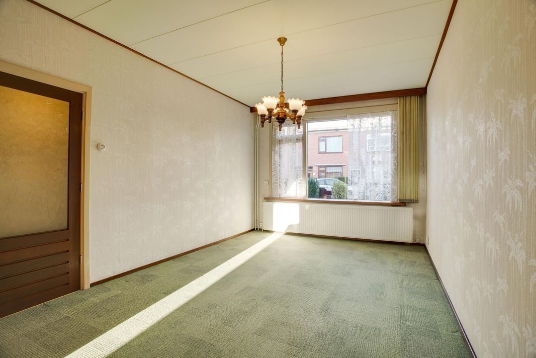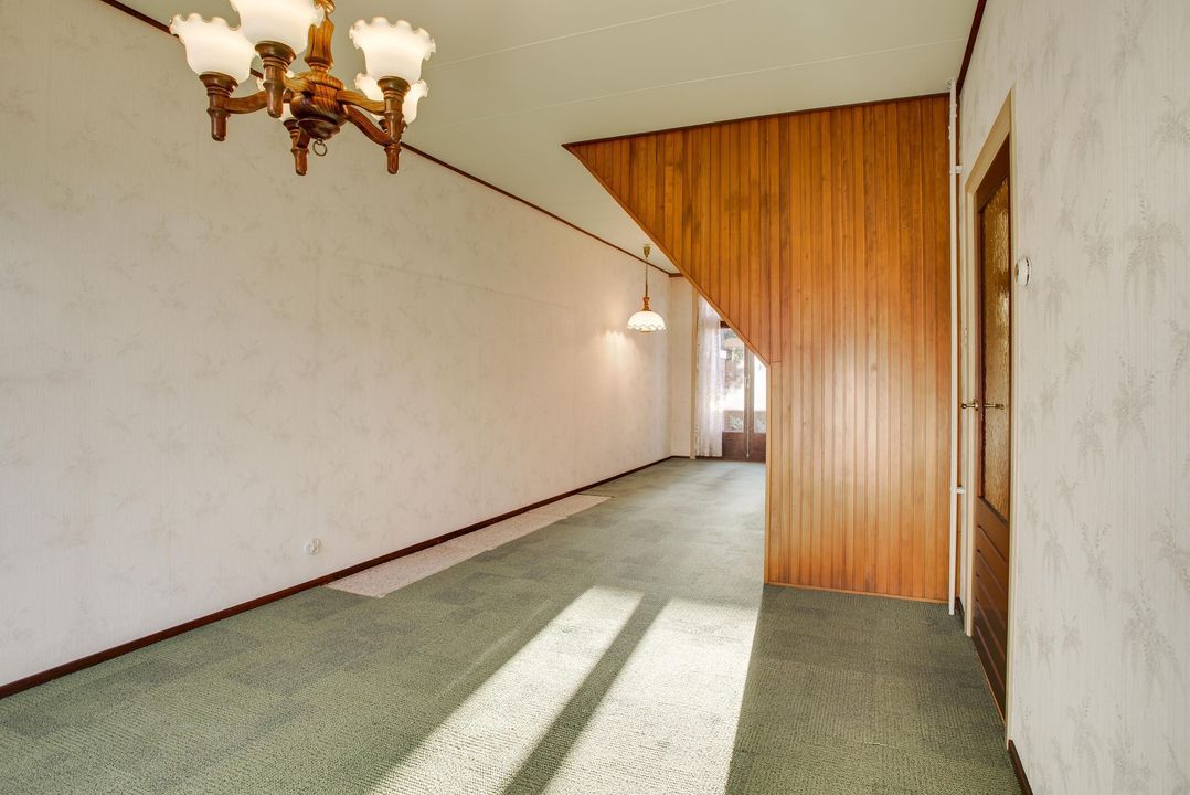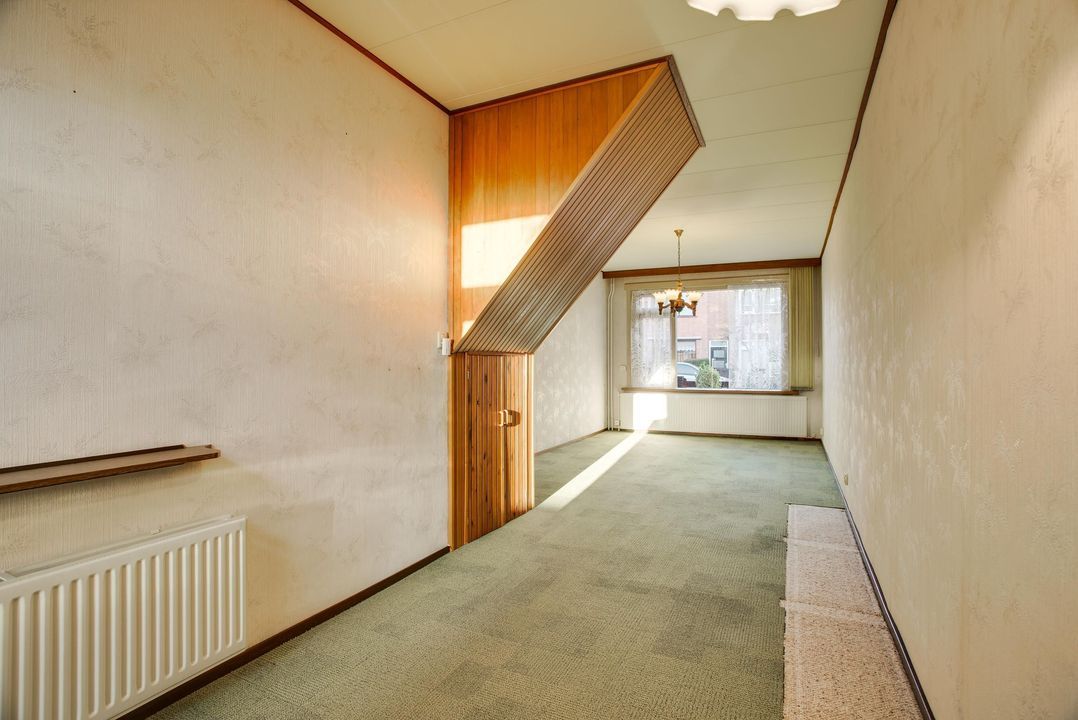 Parterre: entree, hal, gang met toilet, woon/eetkamer (10.05x3.37/2.36), doorgang naar nette keuken (2.98x1.97).