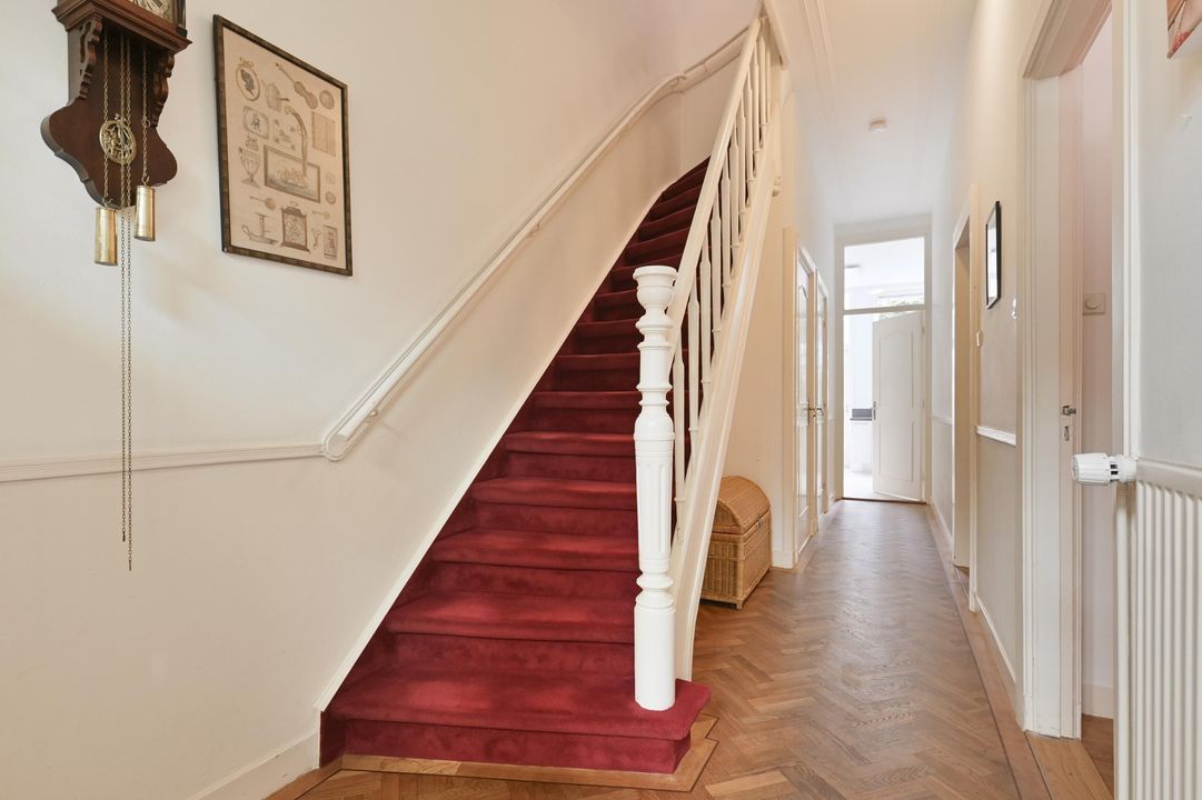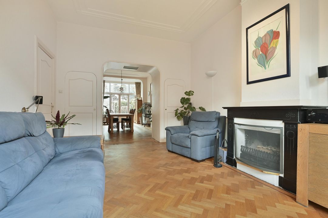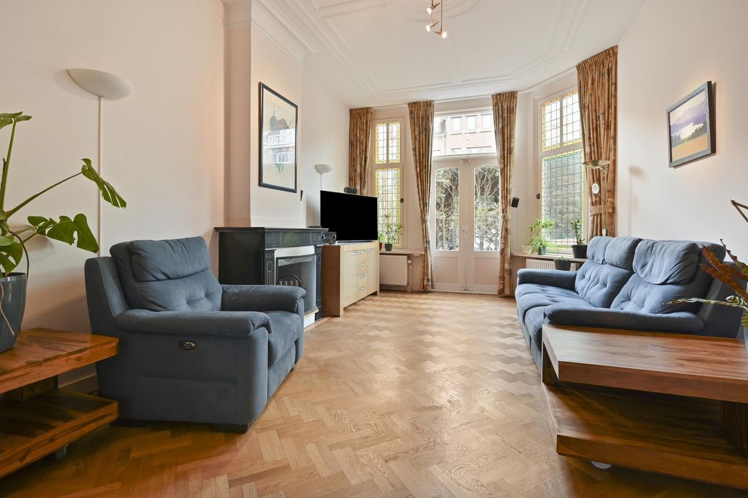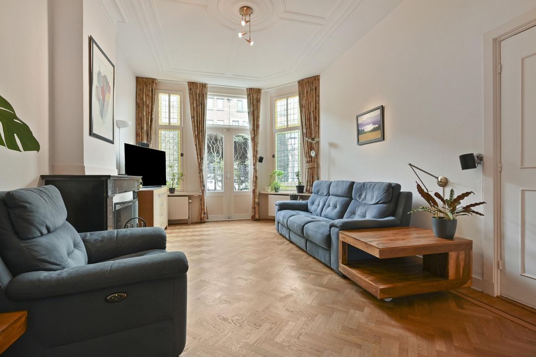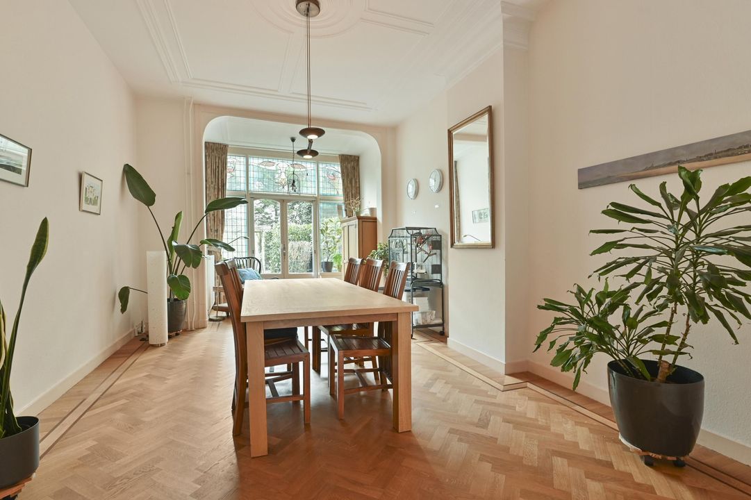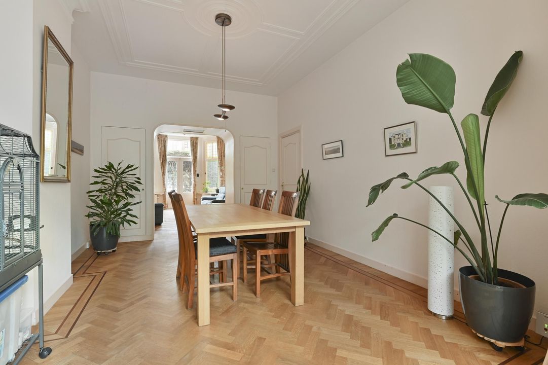 In een rustige zijstraat tussen de gezellige Frederik Hendriklaan en de Frankenslag gelegen herenhuis met veel authentieke details, een voor-en achtertuin, 6 slaapkamers, 2 badkamers, 10 zonnepanelen en een kelder.