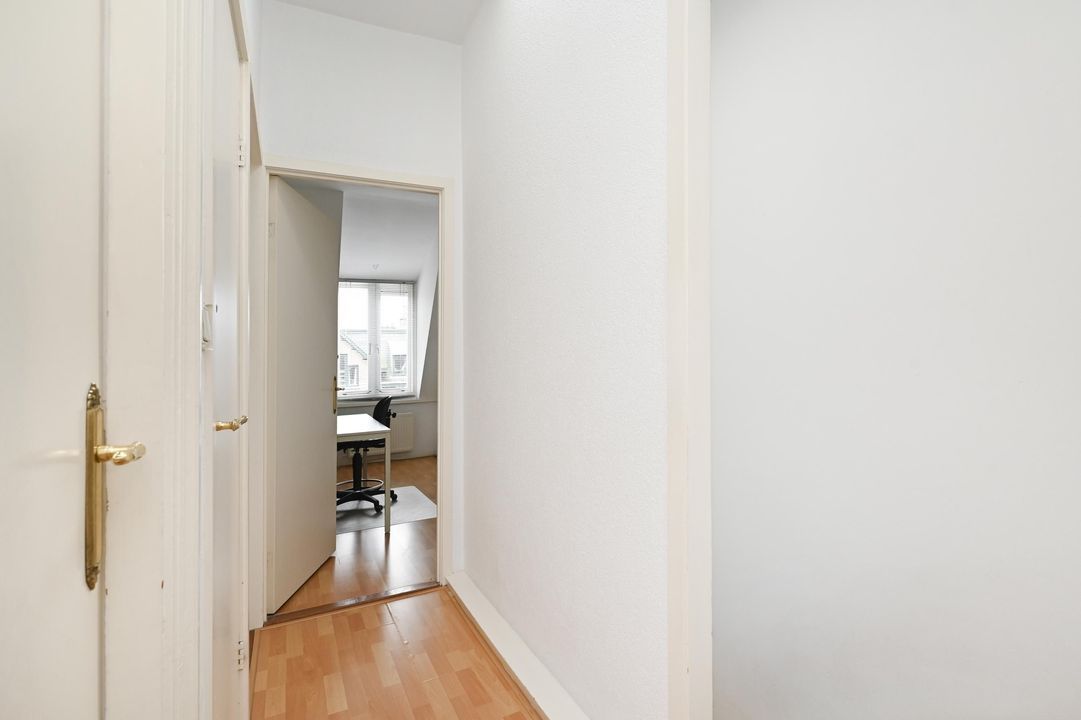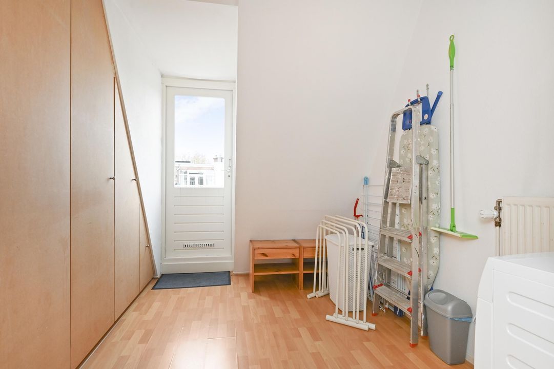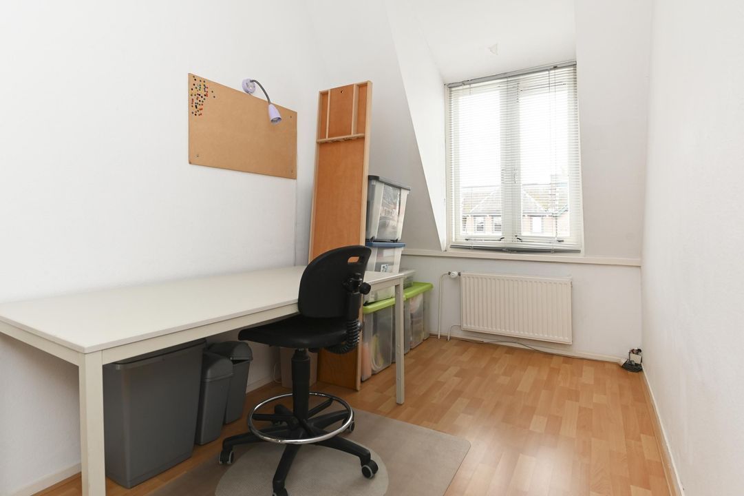 overloop met daklicht, voorkamer 4.5x3.8, voorzijkamer 3.5x2.0 (ideaal als werkkamer), achterkamer 4.2x3.0 + 1m², tussen badkamer 3.8x1.0 met douche, wastafel en toilet, de achter zijkamer is in gebruik als waskamer met veel opslagruimte en klein balkon.