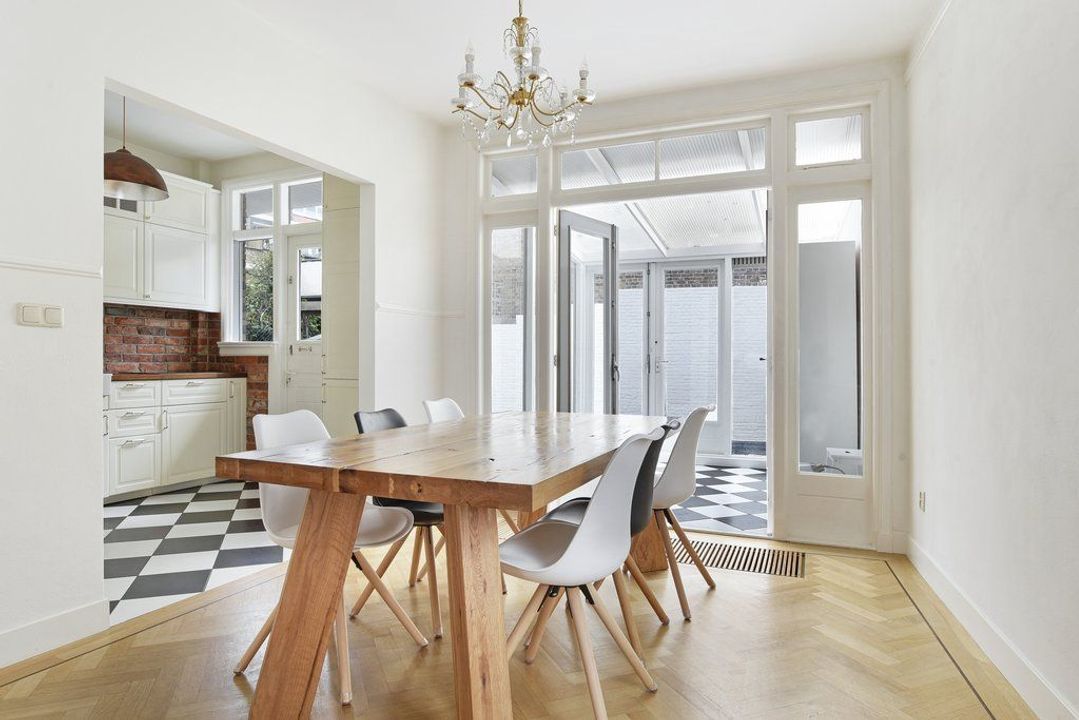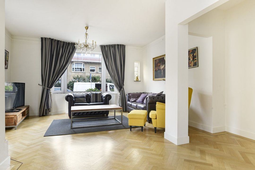 In autoluwe straat in het prachtige Belgisch Park bieden wij deze, zeer gunstig gelegen, 5-kamer parterre woning (105 m²) aan met 3 slaapkamers, een ruime woon-/eetkamer met open keuken en een lichte serre met vloerverwarming, moderne badkamer, 11 meter brede achtertuin met achteringang voor de fietsen en 2 zonnige voortuinen.