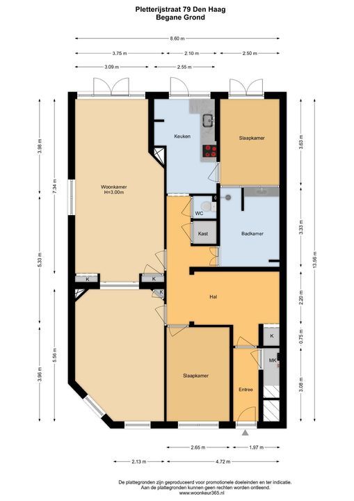 De woning is ideaal gelegen t.o.v. de uitvalswegen en u loopt zo zo naar het Centrum van Den Haag. Openbaar vervoer is eveneens vlakbij.
