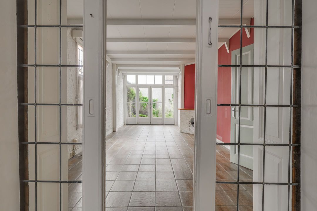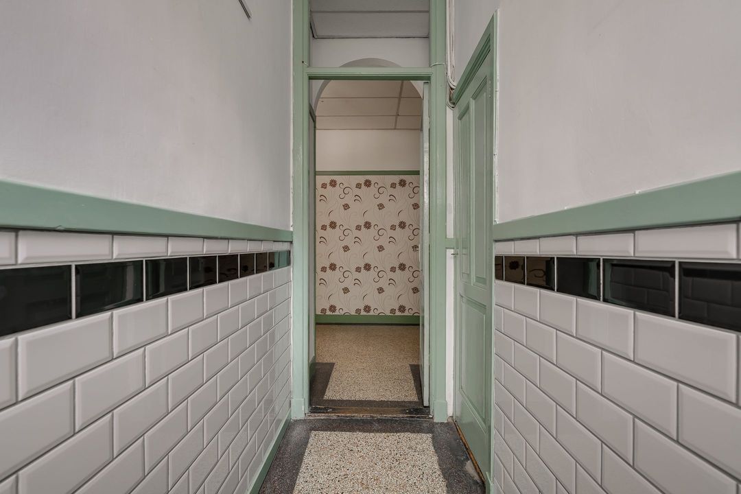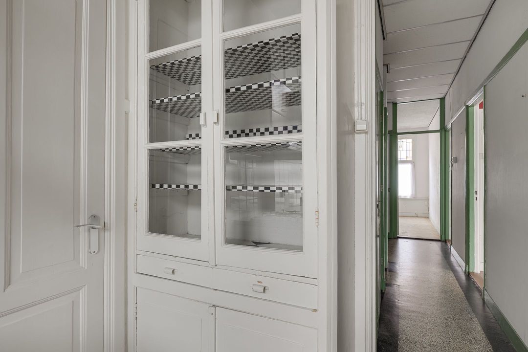 entree, gang en grote hal (4.72x2.20) met fraaie granito vloer, zeer grote voor- en achterkamer en suite (13.56x3.75/3.09), met mooie suite deuren en bovenlichten met fraai glas in lood, hoge plafonds en tegelvloer, voorzijkamer (2.65x3.96), gangkast, toilet, zeer ruime badkamer (3.33x2.50) met douche, dubbele wastafel, eenvoudige keuken (3.63x2.55/2.10) met net keukenblok en toegang tot achterzijkamer (3.63x2.50).