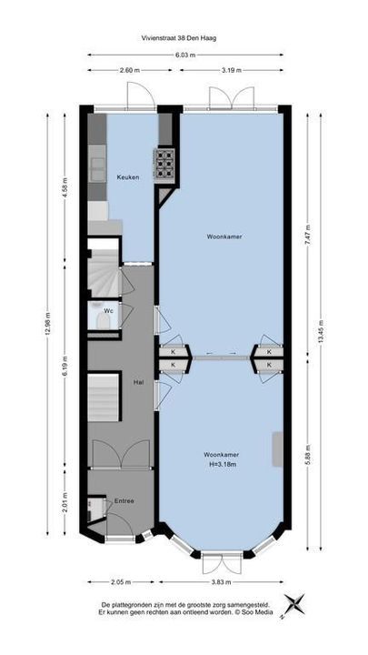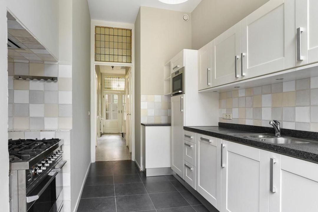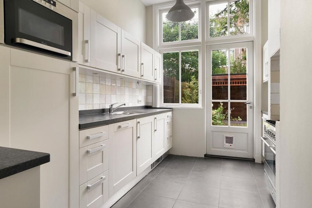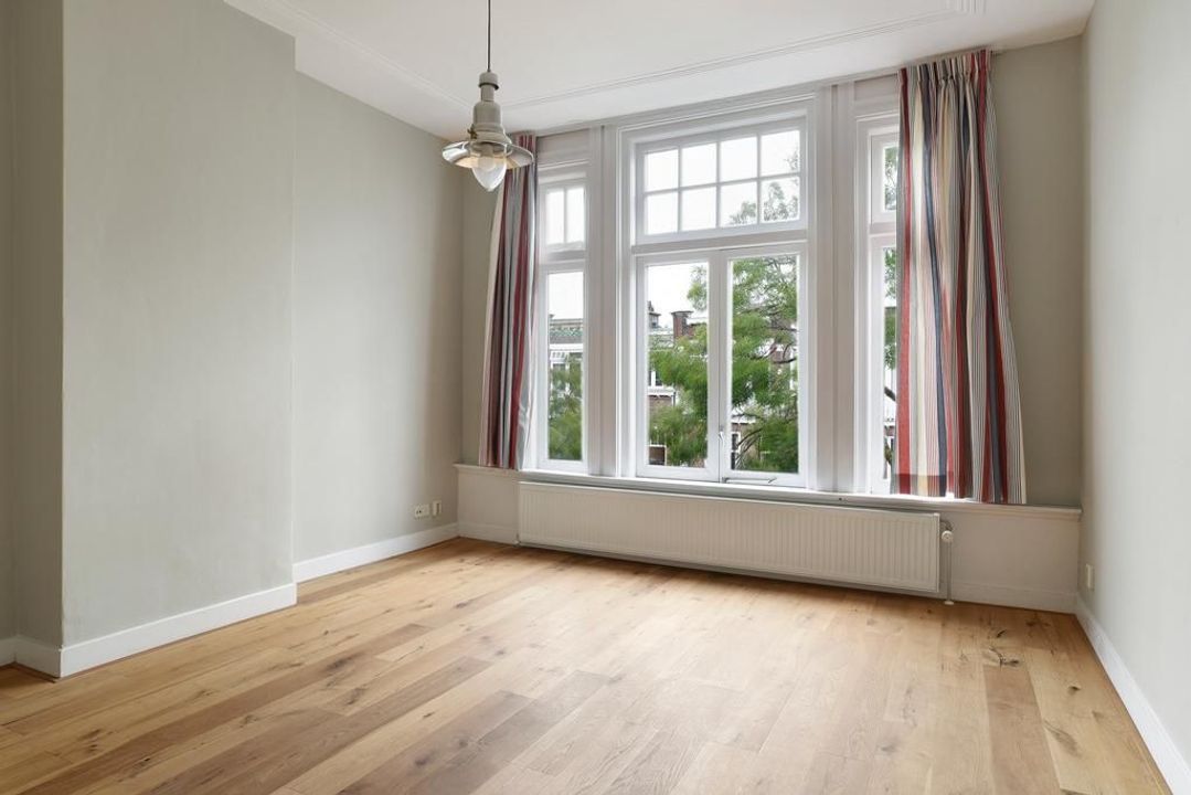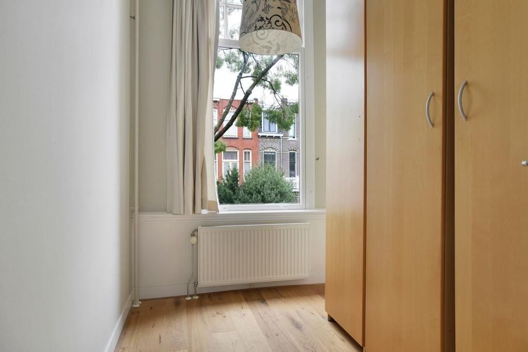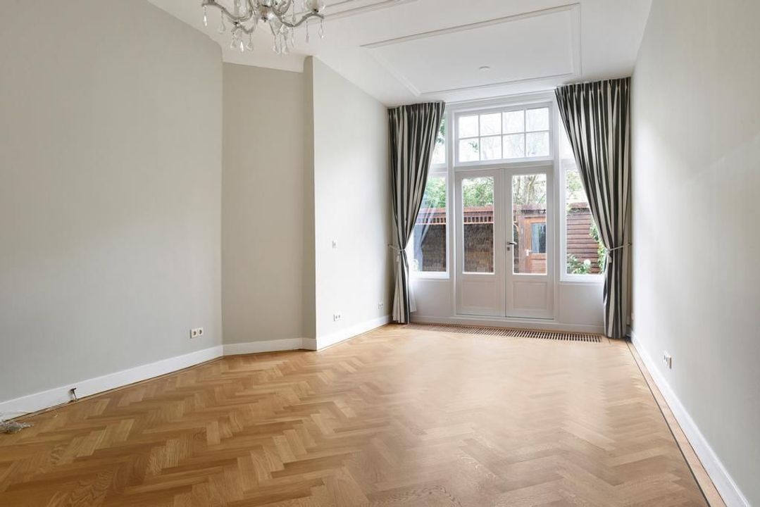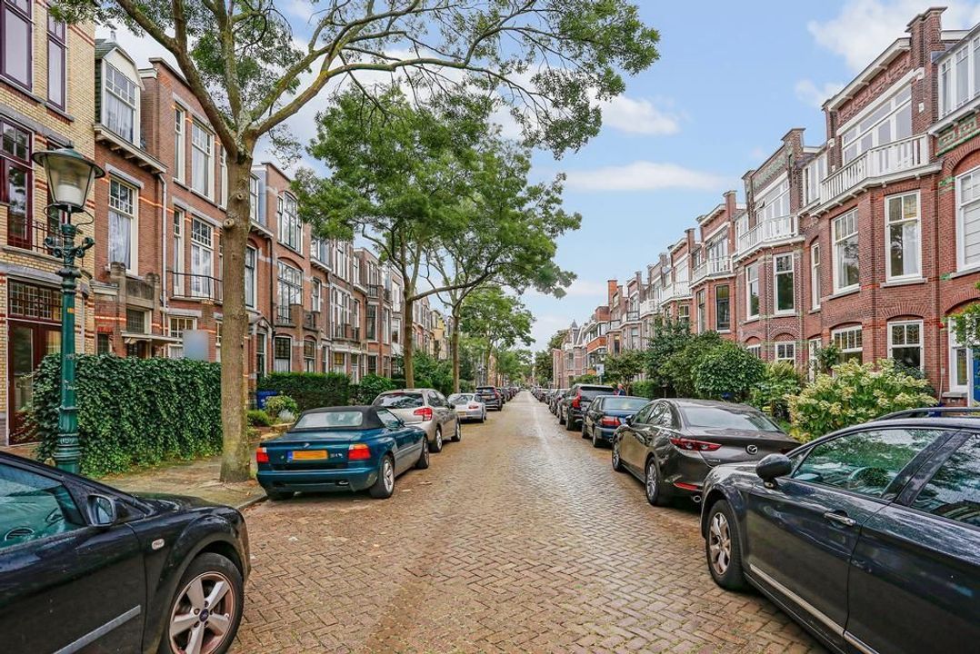 Very well maintained, recently updated family house, with a very nice living-dining room, modern kitchen with appliances, 5 bedrooms, 2 bathrooms, a garden in the front, a sunny back garden (south east) and a very large basement in a nice, quiet street with lots of green in the Statenkwartier, nearby the French-, German- and European school.