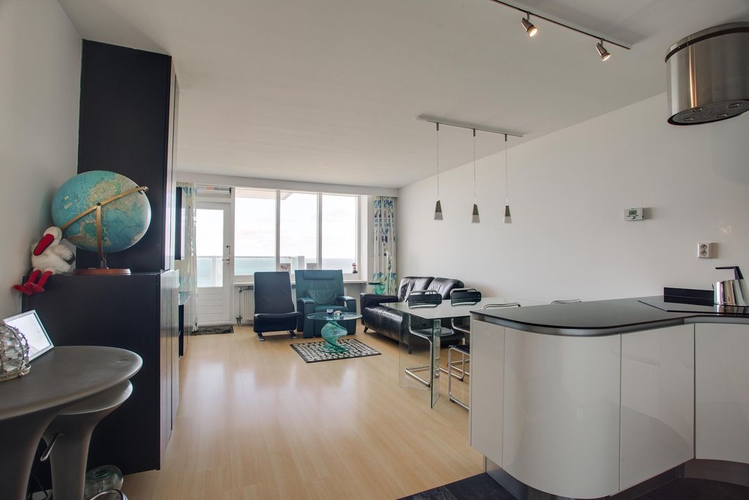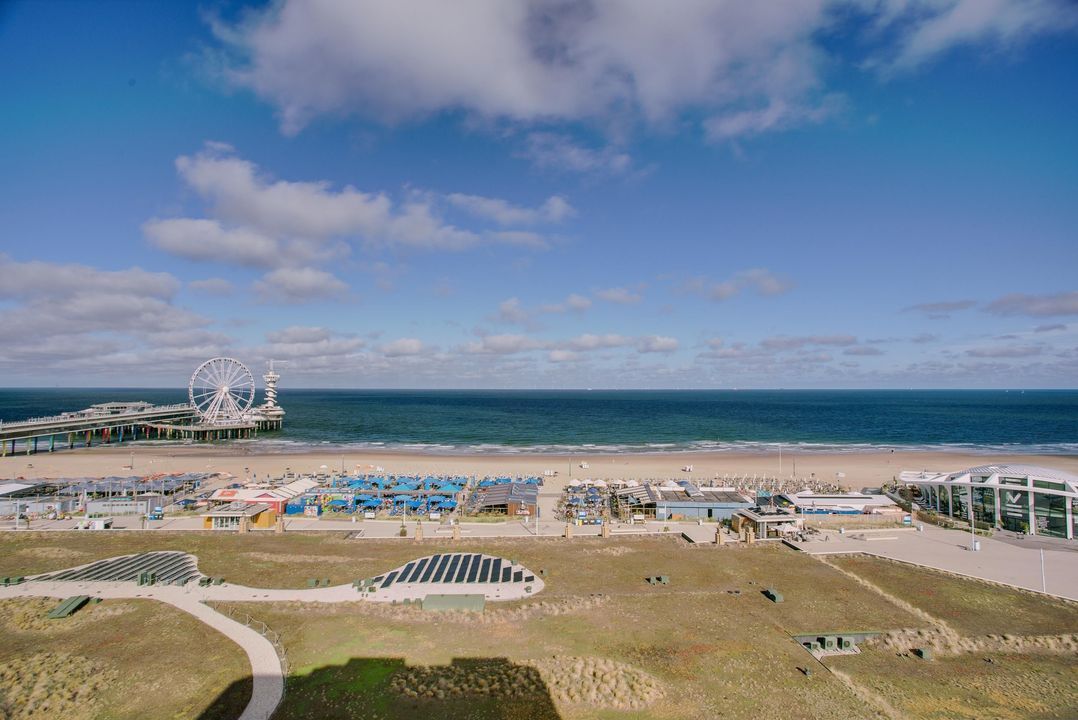 Dit fraaie appartement heeft uitzicht op de eindeloze horizon van Hoek van Holland tot IJmuiden en een adembenemende zonsondergang, waarbij de branding van de zee het bruisende strandleven op Scheveningen elke dag bijzonder maakt.