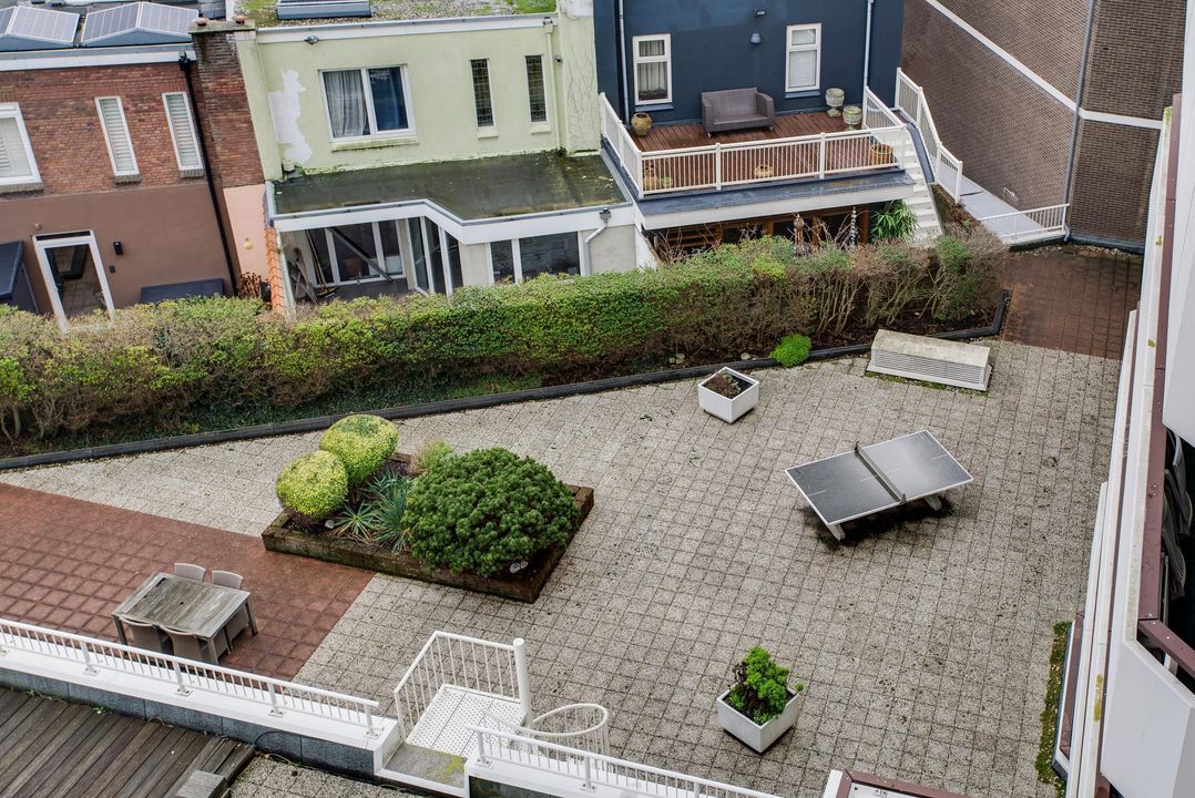 - terras aan de voorzijde heeft geen dak, hierdoor is er vele uren meer zon dan op de lager gelegen appartementen